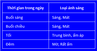 Số lượng ánh sáng chúng ta cần phụ thuộc vào thời gian trong ngày và các hoạt động chúng ta đang cố gắng đạt được.