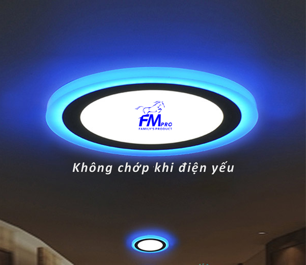 Đèn LED ốp trần nổi tròn 12+4W là loại đèn ốp trần nổi tán quang với ánh sáng được tán đều gồm giữa sáng trắng + viền màu : xanh dương hoặc hồng, hoặc vàng, có 3 chế độ bật được sử dụng lắp đặt cho hiên nhà, phòng tắm, phòng khách, phòng ăn…
